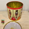 Il famoso tamburo del soldatino schiaccianoci, che diventa un bellissimo barattolo di latta, lavorato in rilievo. Può contenere fino a 4 pacchetti di tè o tisana.