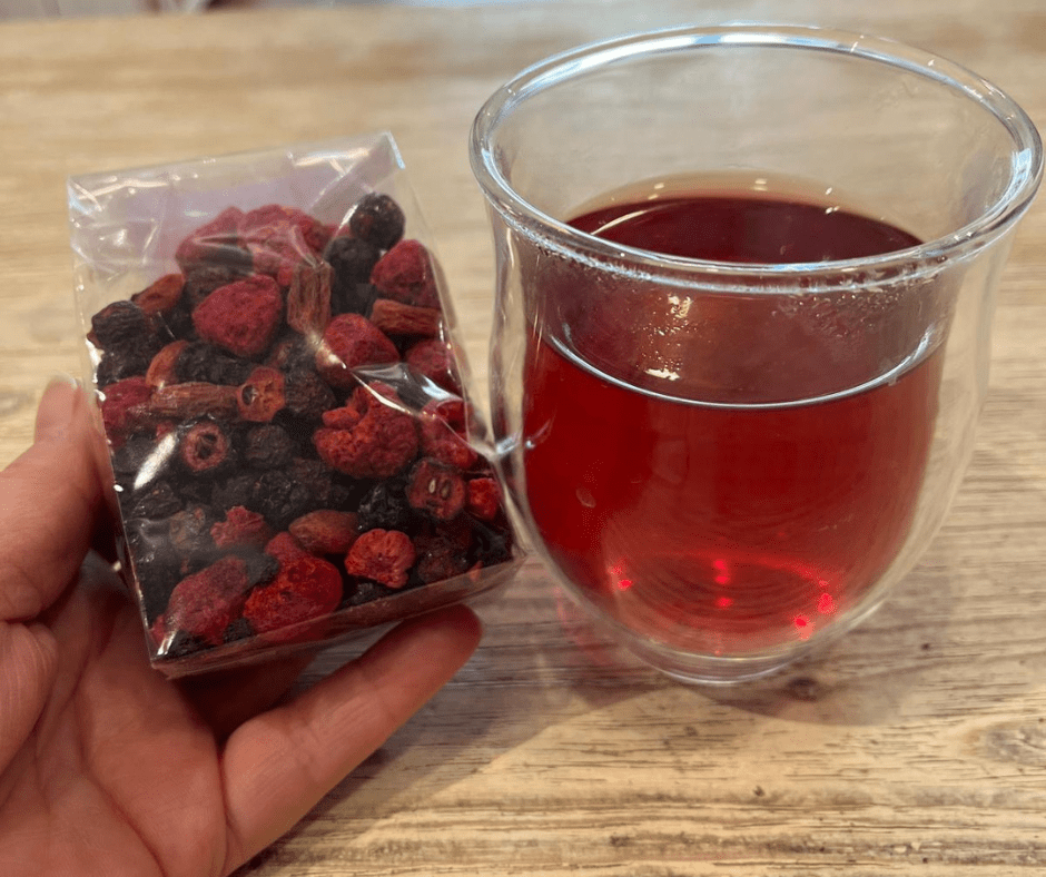 Prepararlo è semplice e non richiede né fretta né sforzi. Versa un cucchiaio della miscela in una caraffa con acqua fresca, lascia in infusione per quattro ore (o tutta la notte in frigo), poi servi con ghiaccio. Le bacche possono restare immerse nella caraffa: oltre a essere belle da vedere, continuano a profumare e arricchire l’acqua con le loro proprietà.